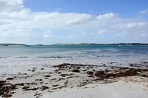 Pondalowie Bay is located on the west coast of the south-west tip of Yorke Peninsula within Spencer Gulf in South Australia about 12 kilometres (7.5 miles) west of Marion Bay. It lies between Royston Head at its northern extremity and an unnamed point at its southern extremity which is reported as being 0.75 nautical miles (1.39 km; 0.86 mi) north north-west of West Cape. The west side of the bay is guarded by three islands (from north to south) - Royston, Middle and South. The east side of the bay is formed by ‘a sandy beach backed by sand hills.’[5][4] The entry into and out of the bay by small vessels can be achieved by passing through the gap between Middle Island and South Islet as water depths approach 11 metres (36 feet) and as the width of the gap approaches 0.75 nautical miles (1.39 km; 0.86 mi).[5] There is a navigation aid consisting of a light is located on the South Islet.[6][3]