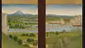Detail from the Pérussis Altarpiece, the earliest depiction of the bridge, c. 1480. One arch near the center of the bridge has collapsed.