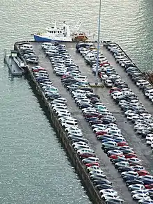 Another major import are used cars, with approximately 250,000 landed per year.[17] The cars are mainly relatively new Japanese models, due to the very strict technical requirements of the Japanese road authorities. Due to the country's very strict biosecurity regulations, formerly administered by the MAF and now by its successor agency MPI, cars (and many other goods) have to pass through a decontamination facility, which strongly increases turnover times.[14]