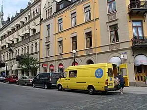 PostNord Sverige (formerly Posten AB) is the name of the Swedish postal service. In 2009 Posten merged with its Danish equivalent, Post Danmark A/S, forming PostNord AB, a holding company that is jointly owned by the Swedish (60%) and Danish (40%) governments.[1] A rebranding to PostNord for both the mail and logistics divisions was performed in 2015.[2]