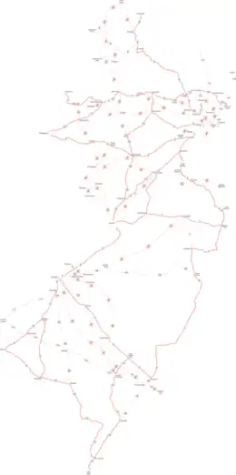 | Trenton | Pennington - Woodsville - Ringoes - Flemington - Clinton - Glen Gardner - Hampton - Washington | Buttzville | Pennington Road, Pennington-Hopewell Road, Marshall's Corner-Woodsville Road, Rocktown Hill Road, Spruce Run Turnpike, Buttzville Road | 1924, c. 233 | 30 | 31 | |||