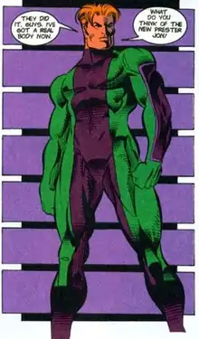 Later, the Teamers came in contact with the alien Technis, which helped save Vic Stone's life. The Technis granted Prester Jon a new body. This body was based on Jon's old one, but was an artificial construct. This new form still allowed Prester Jon to interface with computers, and alter his form at will (stretching his body into different shapes). It was unknown what other new abilities the body might possess.