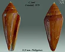 | Apertural and abapertural views of shell of Profundiconus lani (Crandall, 1979) | |