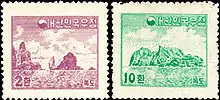 A national identity of anti-communism formed in South Korea under president Syngman Rhee after the nation’s inception in 1948. Strong anti-communist propaganda themes were created to counter North Korean communism and subversion which was seen as the threat.[2] The South Korean government enacted legislation against “anti-national” activities in 1948 and firmly establishing an anti-communist ideology with the National Security Act. The act outlawed any dissent or criticism of the ruling South Korean government, effectively making communism illegal. This included the media, art, literature and music. South Korea sought to establish itself as distinctly democratic and opposed to North Korea's communist national identity. This external theme was to lobby for the support of the United States for South Korea’s security. South Korean propaganda needed to counter the heavy pro-communist propaganda of North Korea and the cult of personality surrounding Kim Il-Sung. The competing propaganda themes sought to draw defectors to their respective ideologies in hopes of reuniting the peninsula. The anti-communist mindset was more firmly entrenched after the Korean War furthering animosity and the split between the two Koreas.[3]