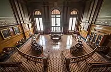 Providence residents ratified a city charter in 1831 as the population passed 17,000.[12] The seat of city government was located in the Market House[26] in Market Square from 1832 to 1878, which was the geographic and social center of the city. The city offices soon outgrew this building, and the City Council resolved to create a permanent municipal building in 1845.[26] The city offices moved into Providence City Hall in 1878.[27]