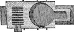 In 1783, Peter Onions at Dowlais constructed a larger reverbatory furnace.[4] He began successful commercial puddling with this and was granted patent Nº1370. The furnace was improved by Henry Cort at Fontley in Hampshire in 1783–84 and patented in 1784. Cort added dampers to the chimney, avoiding some of the risk of overheating and 'burning' the iron.[4] Cort's process consisted of stirring molten pig iron in a reverberatory furnace in an oxidising atmosphere, thus decarburising it. When the iron "came to nature", that is, to a pasty consistency, it was gathered into a puddled ball, shingled, and rolled (as described below). This application of grooved rollers to the rolling mill, to roll narrow bars, was also Cort's adoption of existing rolling mills on the Continent.[5] Cort's efforts to license this process were unsuccessful as it only worked with charcoal smelted pig iron. Modifications were made by Richard Crawshay at his ironworks at Cyfarthfa in Merthyr Tydfil, which incorporated an initial refining process developed at their neighbours at Dowlais.