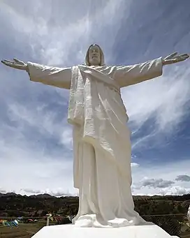 ![]() The Cristo Blanco statue on top of the mountain Pukamuqu | |