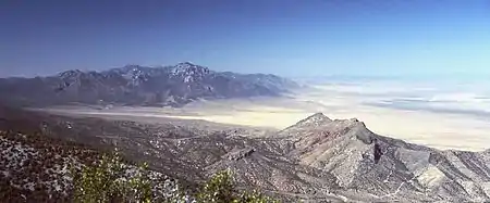 It is closely associated with the Grant Range, which connects to it at the mountain pass of Cherry Creek Summit 7,596 feet (2,315 m).[1] From there, the range runs for approximately 33 miles to the southwest. To the west is the large Railroad Valley, to the east is White River Valley, and to the south is Sand Spring Valley.