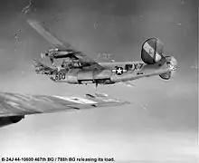 The group flew the Consolidated B-24 Liberator as part of the Eighth Air Force's strategic bombing campaign. The 467th began operations on 10 April 1944, with an attack by thirty aircraft on an airfield at Bourges in central France.