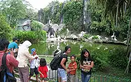 Ragunan Zoo (Indonesian: Kebun Binatang Ragunan) is a zoo located in Pasar Minggu, South Jakarta, Indonesia. The zoo has an area of 140-hectare (350-acre). The zoo has an aviary and a primate centre, and employs over 450 people.[2] Many of the animals in the zoo are endangered and threatened from all parts of Indonesia and the rest of the world. There are a total of 2,288 animals inside the zoo.[3] Laid out in a lush tropical habitat, rare animals such as crocodile, gorilla, orangutan, tapir, anoa, sumatran tiger, babirusa , and peacocks are given ample room. The zoo is located in South Jakarta and is easily accessible through the Jakarta Outer Ring Road and TransJakarta Corridor 6 bus (green color).[4]