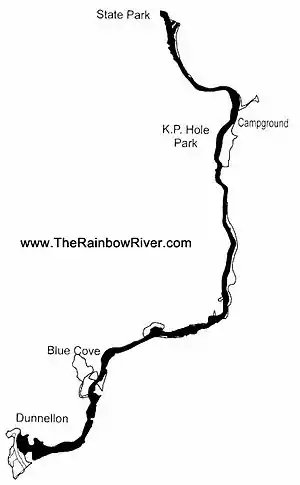 Rainbow Springs, formerly known as Blue Spring, is a first-magnitude artesian spring formation in Marion County, Florida, United States, several miles north of the city of Dunnellon. Rainbow Springs is the focal point of Rainbow Springs State Park. The spring formation is the fourth-largest in Florida, and produces over 490 million gallons of water daily. Rainbow Springs forms the headwaters of the Rainbow River, which empties into the Withlacoochee River.