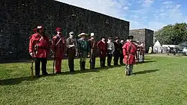 Raised by doctor and planter Jack Shackelford in November 1835, the unit took its name from the red jeans of their uniforms and was outfitted with equipment from Alabama state arsenal. Consisting of some 70 men, nearly half the men in Courtland, the unit remained encamped until December 12 before setting out for Texas by way of New Orleans. After arriving at Lavaca Bay on January 19, 1836, and being accepted into Texas service on February 3, the Red Rovers were put under command of Colonel James W. Fannin.[2] They fought in the Battle of Coleto on March 19–20, performing well, but the Texians were overrun and ultimately forced to surrender.[1]