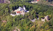 On its summit dome are the priory church of St. Remigius, the only surviving building of the old eponymous priory, and the ruins of Michelsburg Castle, which are close to one another and only separated by a shallow basin.