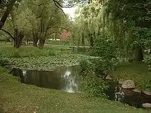 Rhizofiltration may be applicable to the treatment of surface water and groundwater, industrial and residential effluents, downwashes from power lines, storm waters, acid mine drainage, agricultural runoffs, diluted sludges, and radionuclide-contaminated solutions. Plants suitable for rhizofiltration applications can efficiently remove toxic metals from a solution using rapid-growth root systems. Various terrestrial plant species have been found to effectively remove toxic metals such as Cu2+, Cd2+, Cr6+, Ni2+, Pb2+, and Zn2+ from aqueous solutions.[2] It was also found that low level radioactive contaminants can successfully be removed from liquid streams.[3] A system to achieve this can consist of a “feeder layer” of soil suspended above a contaminated stream through which plants grow, extending the bulk of their roots into the water. The feeder layer allows the plants to receive fertilizer without contaminating the stream, while simultaneously removing heavy metals from the water.[4] Trees have also been applied to remediation. Trees are the lowest cost plant type. They can grow on land of marginal quality and have long life-spans. This results in little or no maintenance costs. The most commonly used are willows and poplars, which can grow 6 - 8’ per year and have a high flood tolerance. For deep contamination, hybrid poplars with roots extending 30 feet deep have been used. Their roots penetrate microscopic scale pores in the soil matrix and can cycle 100 L of water per day per tree. These trees act almost like a pump and treat remediation system.[5] Willows have been successfully used as “vegetation filters” for nutrient (e.g. nitrogen and phosphorus) removal from municipal wastewater [6] and polluted groundwater.[7]