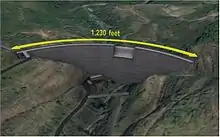 The dam will consist of a dike of 220 feet high by 1,230 feet wide. It will use 368,000 cubic yards of compressed concrete. As of 22 March 2009, 88 percent of the concrete work had been completed. Its scheduled completion date is 2013. The total investment is $375 million USD.[35]