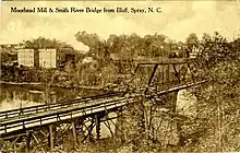 Meanwhile, James Turner Morehead, inherited John Motley Morehead's holdings in Leaksville in 1866. He focused on expanding industry in the area, creating the Spray Water Power and Land Company to develop his mills, and supporting the laying of new railroads.[35] By the 1890s, Morehead had grouped his textile holdings into two companies, the Leaksville Cotton and Woolen Mill Company and the Spray Water Power and Land Company, and turned them over to his son-in-law, Frank Mebane.[36] Under Mebane's direction and with the backing of northern investors, the Spray Water Power and Land Company, between 1898 and 1906, built six new cotton mills and created a warehouse company.[36][37] The expansion of the textile industry led to the growth of two new mill communities in the vicinity of Leaksville, Spray and Draper.[38][22] The three communities collectively became known as the "Tri-Cities".[39] One of Mebane's holdings, the Spray Cotton Mills company, was sold to a private owner in 1897.[37] Most of the rest were taken over by Marshall Field & Company in 1911 and 1912 after Mebane overextended his credit.[36][38]