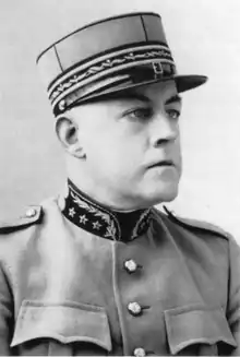 Masson was the son of commercial director Jules Auguste and Eugénie Jeanneret.[7] After completing his high school diploma and studying history at the University of Neuchâtel, Masson joined the Swiss Armed Forces, becoming an infantry soldier. In 1915 he was promoted to lieutenant.[8] In 1922, Masson was promoted to Captain, becoming an infantry instructor and by 1927 had become a member of the general staff.[7] In 1928, he attended ETH Zurich where he studied military science, before continuing study at the École supérieure de guerre (military education institute) in Paris.[7] In 1931, Masson became a co-editor and later editor-in-chief of the Swiss Military Review (Revue militaire suisse), which is a Swiss publication devoted to security and defence policy issues,[9] a position he held until 1967.[7] In 1935, Masson became a lecturer in the ETH Zurich. At the same time, he was promoted Chief of Staff of Division 1.[7]
