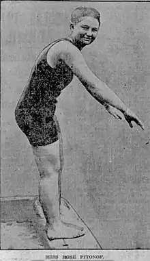 - ↑ "Rose Pitinof Made 17 Mile Swim in New York Yesterday". The Lowell Sun. September 19, 1910.