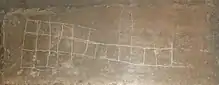 The game was popular among all social classes.[4] A graffito version of the game carved with a sharp object, possibly a dagger, was discovered on one of the human-headed winged bull gate sentinels from the palace of Sargon II (721–705 BC) in the city of Khorsabad.[4][5]