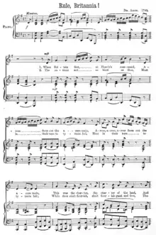 - Arne, Thomas (1753). The Masque of Alfred. London: I Walsh. Note the repetition of the second line and of the word "Britannia" in the first line of the chorus.