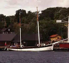 Shanti Devi was a schooner, later rigged as a ketch. From about 1974, it was owned by Norwegian author Axel Jensen and his Indian wife Pratibha who lived on board for many years until 1990. The couple bought it in Waxholm. The ship was built in 1905 at Sjötorps shipyard near lake Vänern in Sweden, and originally named Zeus, but later registered in Gibraltar as SY Shanti Devi under the Jensen's ownership.[1] It was sold when Jensen became seriously ill (with ALS), and was a few years sailing privately under the Norwegian flag until it mysteriously sank outside Arendal in October 2012. Several attempts to salvage the ship have failed.[2]