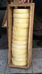 Saint-Nectaire is an Appellation d'origine contrôlée (AOC), a certification given to French agricultural products based on a set of clearly defined standards. For example, it must be made of cow's milk in a specifically delimited area in the Monts-Dore region. The Appellation was first recognized at a national level and awarded AOC status in 1955.[2]