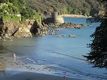 Salcombe Castle or Fort Charles is a ruined fortification just off the beach of North Sands in Salcombe, Devon, England, within the South Devon Area of Outstanding Natural Beauty. It is located on a rocky outcrop which is easily reached on foot at low tide. It is a Grade II listed building and ancient monument.[1][2]