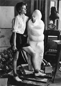 Sally Ryan's went to school in Montreal and her artistic career began in 1933, where she exhibited her first sculpture at the Royal Canadian Academy of Arts in Toronto.[4] The following year she went on to study with the sculptor Jean Camus in Paris, where she achieved an 'honourable mention' at the annual Salon. She exhibited work at The Royal Academy of Arts in London in 1935. Ryan was an associate of the poet Ralph Gustafson and sculptor Jacob Epstein. Epstein made a portrait bust of Ryan, who for a brief time became his, only, pupil.[5][6] Ryan would later purchase several important works by Epstein.[5] Aged twenty, Ryan had a successful solo show at the Cooling Gallery which included her portrait busts of Ellen Ballon, Paul Robeson and Arturo Toscanini.[4] After four years in London, Ryan returned to the United States in 1938.[4] Dividing her time between Connecticut and London, her work featured in exhibitions in both Europe and the United States.[4] In 1940, Ryan's work was included in Philadelphia's International Sculpture Exhibition, prior to her second solo show in New York the following autumn.[6]