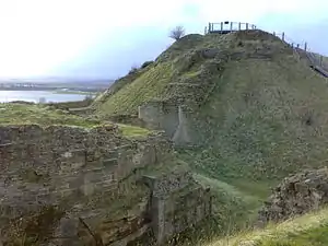 ![]() A view of the Motte and Barbican at Sandal Castle | |