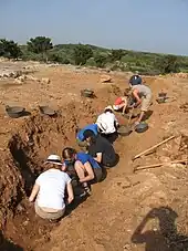 Also, between 1985 and 1987 the same team located a different building which presented graves both inside and outside its limits. Some years later, it was discovered that the building was an Early Christian basilica (See below for more information on these two buildings).[7]