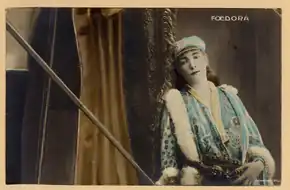 Sarah Bernhardt (French: [saʁa bɛʁnɑʁt];[note 1] born Henriette-Rosine Bernard; 22 October 1844 – 26 March 1923) was a French stage actress who starred in some of the more popular French plays of the late 19th and early 20th centuries, including La Dame aux Camélias by Alexandre Dumas fils, Ruy Blas by Victor Hugo, Fédora and La Tosca by Victorien Sardou, and L'Aiglon by Edmond Rostand. She also played male roles, including Shakespeare's Hamlet. Rostand called her "the queen of the pose and the princess of the gesture", and Hugo praised her "golden voice". She made several theatrical tours around the world, and she was one of the early prominent actresses to make sound recordings and to act in motion pictures.