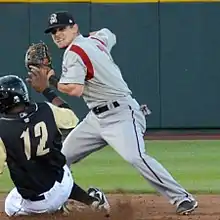 After Weeks departed, Gennett started for the Brewers for the start of the 2015 season on Opening Day. In the game, he was the Brewers' primary second baseman. He started the season batting below .200 before going on the 15-day disabled list after cutting his hand in the shower.[9] He was sent down to the Colorado Springs Sky Sox, the new Brewers AAA team.[9] After spending about one month in the minors, he was recalled to the majors.[9] Gennett and the Brewers avoided salary arbitration on December 3, 2016, by agreeing to a one-year, $2.525 million contract for 2017.[10]