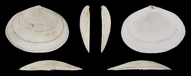 - ↑ Bieler R, Bouchet P, Gofas S, Marshall B, Rosenberg G, La Perna R, Neubauer TA, Sartori AF, Schneider S, Vos C, ter Poorten JJ, Taylor J, Dijkstra H, Finn J, Bank R, Neubert E, Moretzsohn F, Faber M, Houart R, Picton B, Garcia-Alvarez O, eds. (2014). "Scrobicularia Schumacher, 1815". MolluscaBase. World Register of Marine Species. Retrieved 19 April 2019.