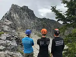 ![]() Members of Seattle Mountain Rescue scout a route during a mission | |