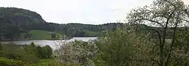 Semsvannet and vicinity belongs to the Norwegian natural, agricultural and cultural history.[4][5][6] The estates Sem, Store Berg and Tveiter are to be found nearby the lake. However, situated even closer to the lake, by far – at the foot of the ridge Skaugumsåsen – is the cultural house Tangen, which during the first half of the twentieth century was the domicile of the Family Kaspersen; who among others frequently was visited by the Norwegian cultural personality and friend Alf Prøysen at social gatherings and feasts arranged by the family.[7][8]