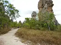 The park contains arid savanna forest (babassu forests] and areas of contact between savanna, arid savanna, and seasonal forest. It protects an important geological formation and conserves water resources in a dry region. The geological monuments are the main attraction. The park also has some pre-historic cave paintings and inscriptions.[4]