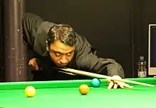 Jogia made it to the main stage of the UK Championship for the first time in 2011 by beating Jamie Cope 6–3 in the final round of qualifying. He was drawn against world number 2, Mark Williams, and won two successive frames to tie the match at 4–4. Unfortunately, Jogia had a bad "kick" while well placed to win the next frame and would lose the match 6–4.[9] Jogia had a good season in the minor-ranking Players Tour Championship series as he played in all 12 of the events, reaching the semi-finals in the first event, where he lost 2–4 to Ronnie O'Sullivan.[10] He also had two last 16 finishes to be placed 28th on the PTC Order of Merit, just out of the top 24 who qualified for the PTC Finals.[11] Jogia only won one more match in qualifying after his UK Championship exploits and finished the season ranked world number 47.[12][13]