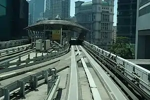 The Yurikamome uses an elevated island platform with two tracks on either side.
