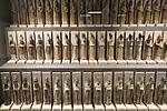 The tomb was discovered and excavated in 2011.[6] It is a massive buried structure on the model of Tang dynasty tombs, which is 42 meters long, 1.8 meters wide and 7.5 meters deep.[6] The monumental subterranean structure is characteristic of Northern Wei, Sui dynasty and Tang dynasty tombs, but not of contemporary Gök Türk tombs, which tend to be shallow and circular, forming a small elevated mound covered with rocks.[8] The tomb of Shoroon Bumbagar was never looted and therefore was found to hold far more artifacts including an intact door, many statues and wall paintings of people, dragons and temples, although there was no inscription.[5][6] 117 clay objects were discovered.[9] About 50 Byzantine gold coins were also found in the tomb, which had been used as ornament rather than currency.[5][10]