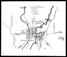 Map depicting the assault on San Antonio de Bexar by Texian forces on December 5, 1835.