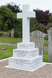 All three sons served in the British Army in the First World War. Basil Knott was a captain in the Northumberland Fusiliers, and was killed at Ypres on 7 September 1915.[4] James Knott was a major in the West Yorkshire Regiment, was awarded the DSO, and was killed on the first day of the Battle of the Somme, 1 July 1916.[5] The brothers are buried side by side in Ypres Reservoir Cemetery.[6]