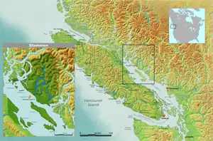The Tla'amin First Nation (Comox language: ɬəʔamɛn), formerly Sliammon Indian Band or Sliammon First Nation, is a First Nations self governing nation whose lands and traditional territories are located on the upper Sunshine Coast in southwestern British Columbia, Canada. The Tla'amin are closely related to the Klahoose and Homalco peoples and have shared their adjoining territories; formerly all three as well as K'omoks were grouped collectively as the Mainland Comox due to their shared language. They have been part of the Coast Salish indigenous peoples of the western coast of Canada since ancient times.[1]