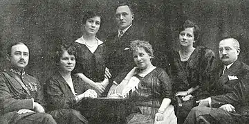 By the early 1920s, her three daughters were already married; unlike the marriage of her parents and this of her own, marriages of Casanova's daughters were very successful. Maria (1888–1979) wed Mieczysław Niklewicz, a journalist, publisher and prestigious figure in the Polish nationalist party; she became an eminent figure in the party herself.[49] They lived in Warsaw but later inherited the Drozdowo estate. Izabela (1889–1972) married Romuald Wolikowski, junior officer in the Russian army who later grew to Polish general. The couple lived in various Polish cities following Wolikowski's service assignments. Izabela was the best-known of all three sisters; she became a writer and her novels, fairly popular in the 1930s, were an attempt to combine Catholic morality drama and popular novel.[50] Halina (1897–1989) married physician Czesław Meissner, who as a nationalist deputy served in the Polish interwar parliament three times; the couple lived in Poznań.[51] A close family friend was the Polish nationalist leader Roman Dmowski, whom Casanova befriended in the 1900s; some scholars claim that she wielded "enormous informal influence in Polish Catholic and nationalist circles", and that her three daughters became Dmowski's "surrogate family".[52] Though politically she admitted having been a supporter of Endecja, she reserved respectful words for its key political foe, Piłsudski; she declared that democracy was not an operational concept and that dictatorship, be it this of Piłsudski in Poland or Primo de Rivera in Spain, was a much better solution.[53]