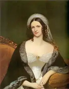 Princess Sofya Stepanovna Shcherbatova (Russian: Софья Степановна Щербатова, née Apraksina; 1798 in Moscow, Russian Empire – 3 February 1885 in Moscow) was a prominent Russian philanthropist, the Dame Chevalier of the Order of Saint Catherine (1822). Princess Shcherbatova (since 1817, when she married Prince Alexey Shcherbatov) was the founder of The Grand Dames Helping the Poor charity (Damskoye Popetchitelstvo o Bednykh, 1844) which she remained the chairman of till 1876, the Nikolskaya Community (which proved particularly effective during the cholera epidemic in 1848 in Moscow and later during the Crimean War), many orphanages and shelters for homeless and elderly people. An heir to the famous Apraksin family, she was greatly interested in literature and arts, kept a fashionable Moscow salon and was a friend of Alexander Pushkin, Pyotr Vyazemsky and Mikhail Lermontov, among others.[1][2]