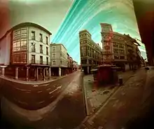 Solarigraphy is a concept and a photographic practice based on the observation of the sun path in the sky (different in each place on the Earth) and its effect on the landscape, captured by a specific procedure that combines pinhole photography and digital processing.[1][2] Invented around 2000, solarigraphy (also known as solargraphy) uses photographic paper without chemical processing, a pinhole camera and a scanner to create images that catch the daily journey of the sun along the sky with very long exposure times, from several hours to several years.[3][4] The longest known solarigraph was captured over the course of eight years.[5][6] Solarigraphy is an extreme case of long-exposure photography, and the non-conventional use of photosensitive materials is what makes it different to other methods of sun paths capture such as the Yamazaki´s "heliographys"[7]