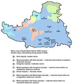 - ↑ "South Bačka District (Serbia): Municipalities & Settlements - Population Statistics in Maps and Charts". Citypopulation.de. Retrieved 2016-09-25.