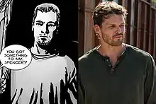 ![]() Spencer Monroe, as he appears in the comic book series (left) and as portrayed by Austin Nichols in the television series (right). | |