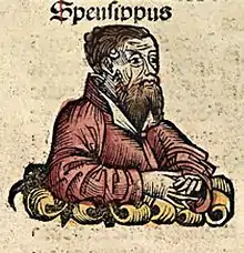 Speusippus, depicted as a medieval scholar in the Nuremberg Chronicle