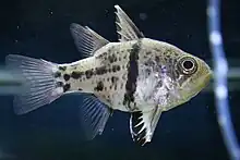 The orbiculate cardinalfish, chubby cardinal, or polka-dot cardinalfish (Sphaeramia orbicularis)[1] is a species of Apogonidae (cardinalfishes). It grows to about 10 cm total length, and has a thin, dark vertical 'waistband' with scattered dark spots toward the tail. It is found in coastal areas throughout much of the Indo-Pacific, including off East Africa, Kiribati, the Ryukyu Islands, New Caledonia, Belau, and the eastern Caroline and Mariana Islands.[1]