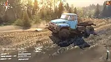 Spintires is a 2014 off-roading simulation video game by developer Oovee Game Studios.[1] In Spintires, players take control of off-road vehicles and drive them through muddy off-road terrain to complete objectives. The game was released on June 13, 2014, and has sold over one million copies. A spin-off game called MudRunner was released on October 30, 2017.[2]